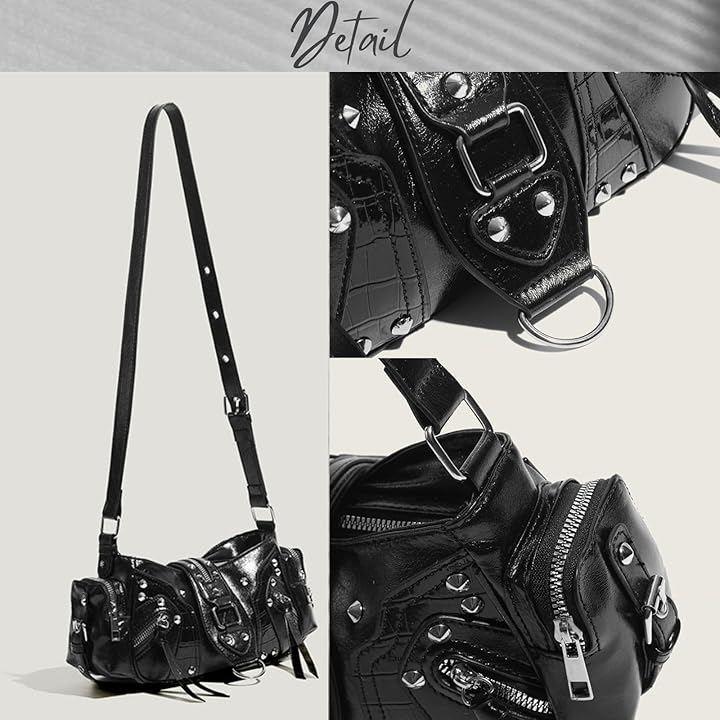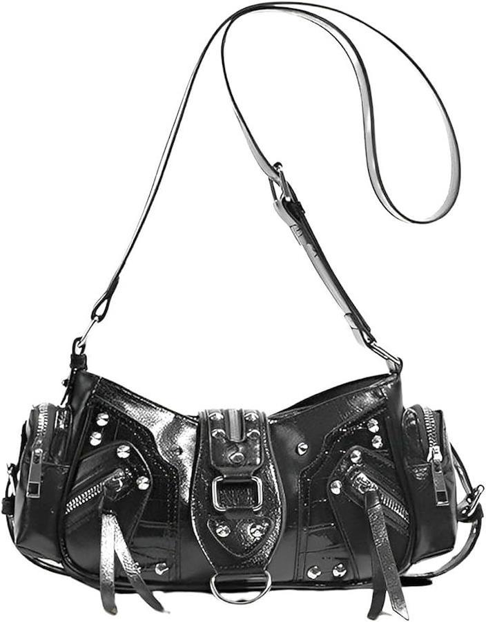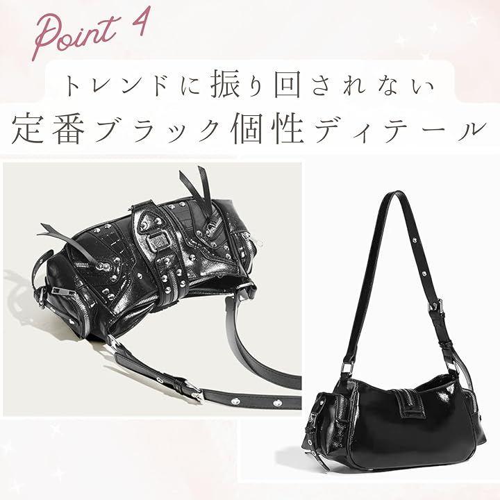 ツヤ感フェイクレザー素材が上品で高見え。締め色ブラックがクール系コーデの決定版