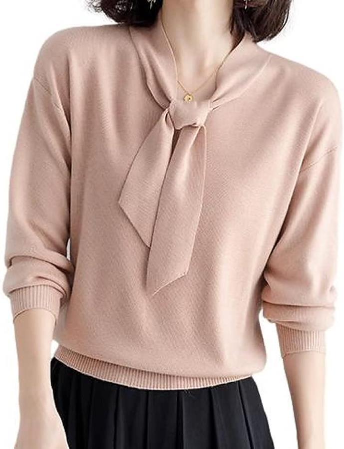 1枚で、雰囲気あるきれいめ感が完成する、ボウタイニットプルオーバー。