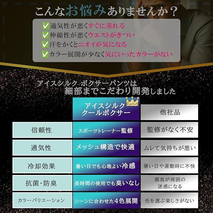 「クールテクノロジーによる持続的冷却効果」冷却効果に優れた素材を使用しており、履いた瞬間から心地よい冷感を実感できます。