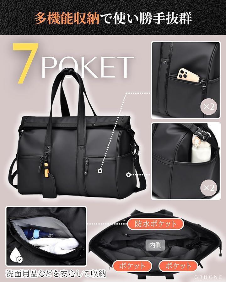 また乾湿分離ポケット付きで洗面用品などを安心して携帯でき、バッグ内の衣類や書類を濡らす心配がありません。