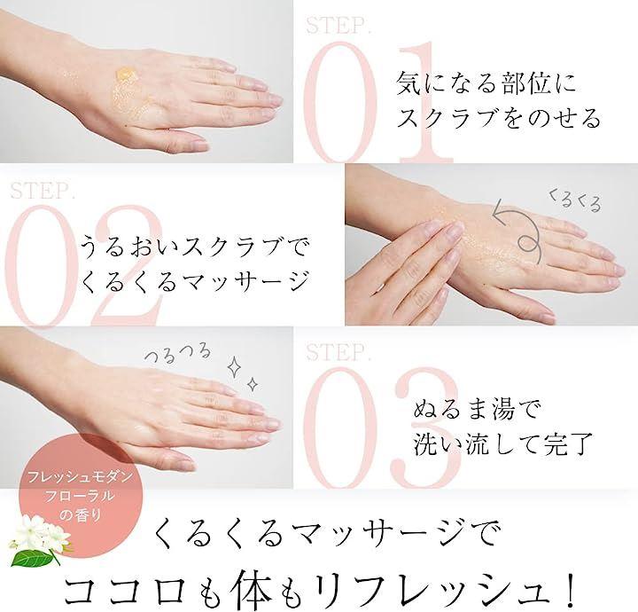 ボディスクラブは、入浴中に濡れた肌に適量を取り、マッサージするように優しく塗ります。