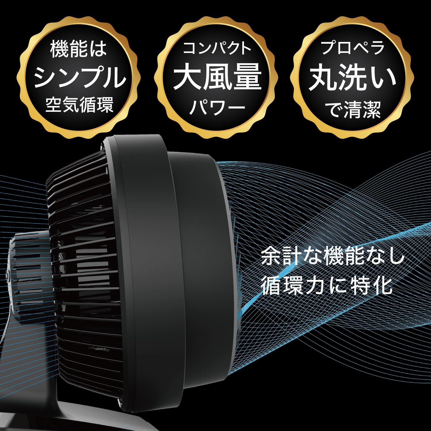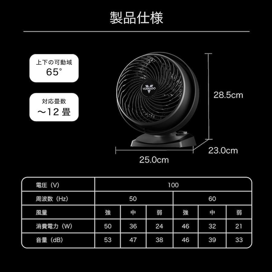 3営業日以内に発送≪新品未開封品≫:コンパクトなのにパワフル、男前のブラックボディの小型サーキュレーター首を振らないのが ボルネードのこだわり。首を振らずに送風すると 部屋全体の空気が循環し、室内全体にそよ風が吹く。サイズ:幅25.0×奥行23.0×高さ28.5cm◆本体重量:1.8kg電源:100V 50/60Hz◆消費電力:50Hz/強50w・中36w・弱24w●60Hz/強46w・中32w・弱21w上下の首可動角度0~65°◆コードの長さ約1.8m◆1年保証