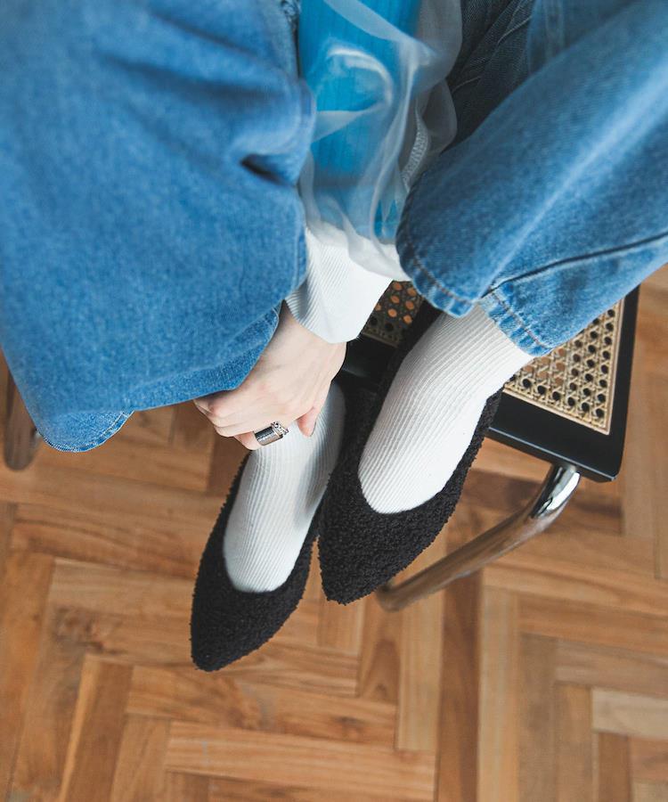 【Design】ポインテッドトゥの大人カッコイイ雰囲気にプードルファーで甘いエッセンスをプラスして。大人可愛い足元を演出してくれます。