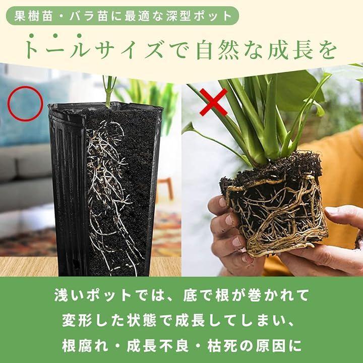 根の健康を守る設計: 高さがあるため、根が下向きに自然に成長し、サークリング現象を防ぎます。