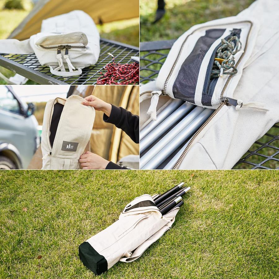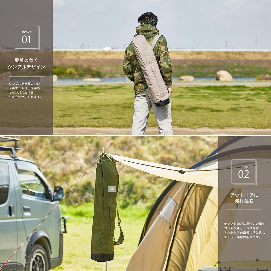 サイズ 約W15×D11(マチ)×H80cm/カラー カーキ素材 綿100%(綿キャンバス 18oz)備考 インド製バラバラとしがちなタープテントのポールを収納できる便利なケースです。ファスナータイプのポケットが内側にあり、ロープなどを整理して収納することができます。18オンスの厚手のキャンバス生地は、タフなアウトドアでも頼もしいクオリティです。ポールだけでなく野球のバットなど、長さのあるものの収納にもお使いいただけます。