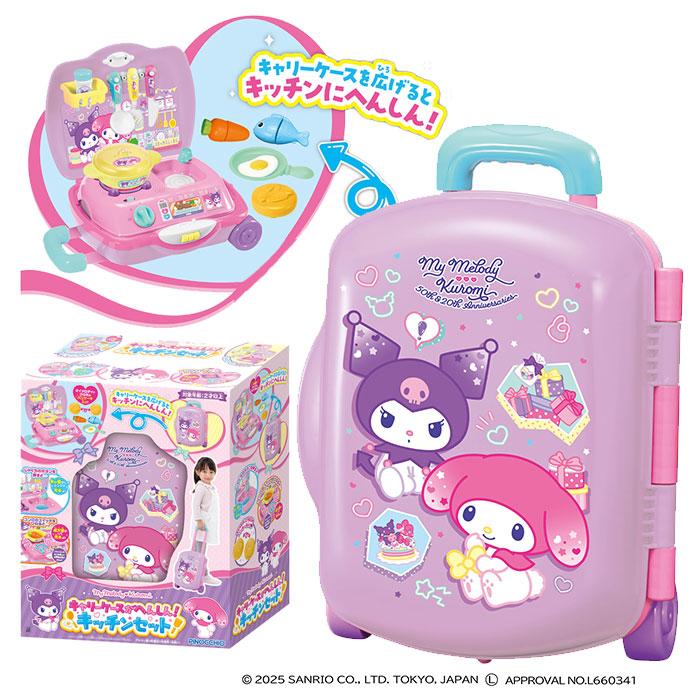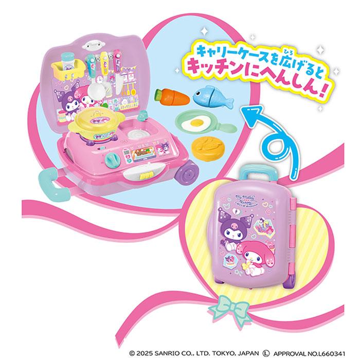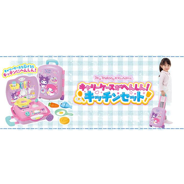 大人気のマイメロディとクロミのデザインのキャリーケース型おままごとセットです。