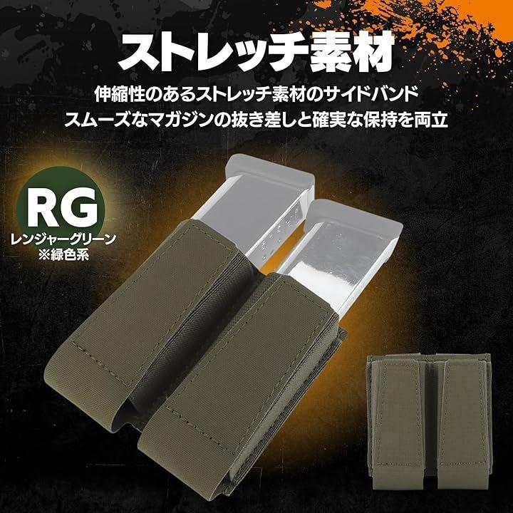 ストレッチ素材のサイドバンドにより、スムーズなマガジンの抜き差し、しっかりした保持を両立させています。