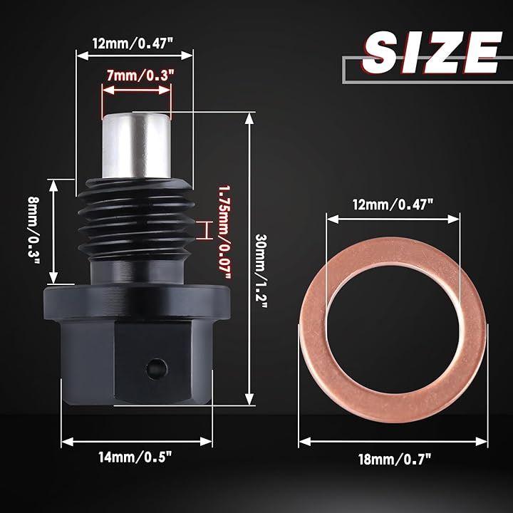 パッケージに含まれるもの:M12 x 1.75磁気オイルドレンプラグ1個、赤銅ガスケット3個
