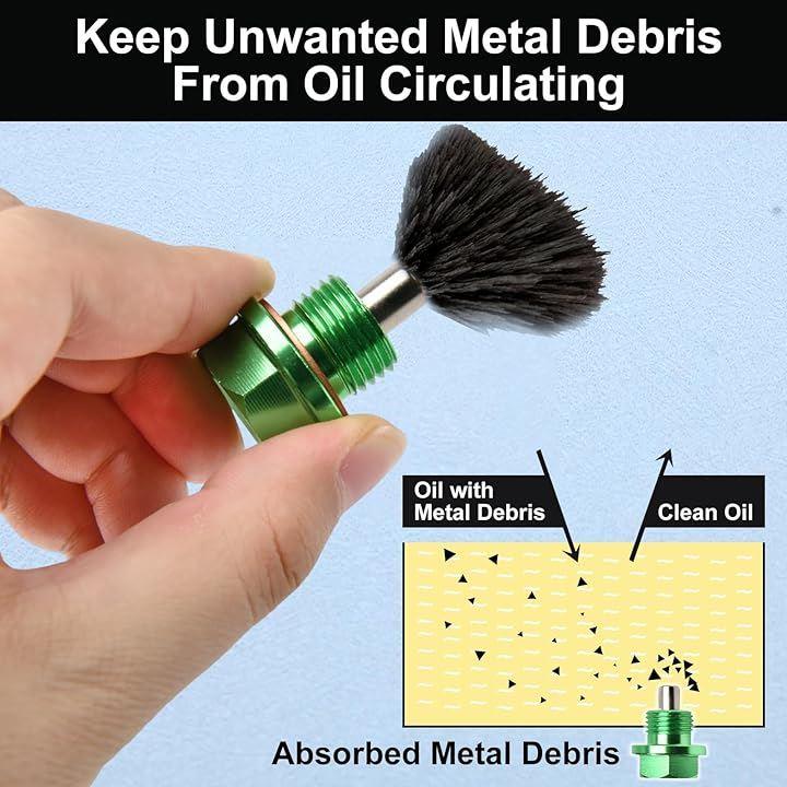 このユニバーサルフィットアルミニウム合金製ドレンプラグは、金属粒子を引き付けてトラップする強力な磁気コアを備えており、エンジンを保護します。