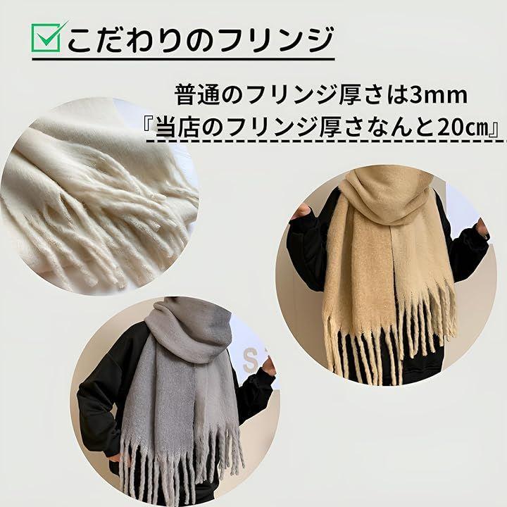 厚手マフラーは、寒い季節の防寒対策には必須アイテムで、首や羽織もの、お子様の昼寝布団としても様々な使い方ができます。。フリンジの長さ20cm.厚さ1cmとボリューム感抜群です。