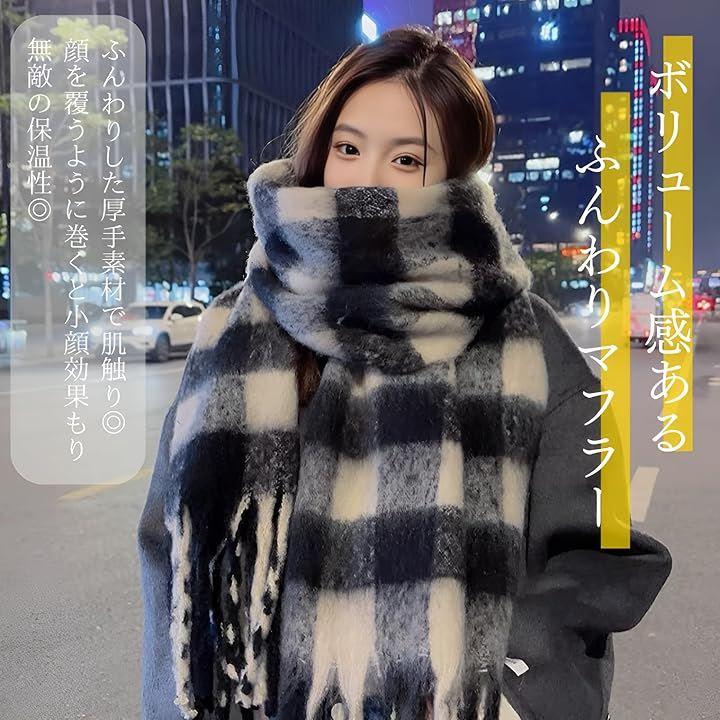 「商品説明」 ふんわりとした厚手素材が首元を優しく包み込む、ボリューム感たっぷりの大判マフラーです。