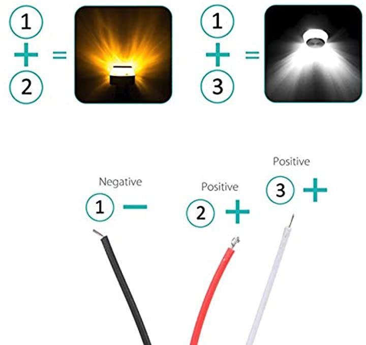 結線方法を変更するだけで簡単に発光色をホワイトorオレンジと変更可能です。