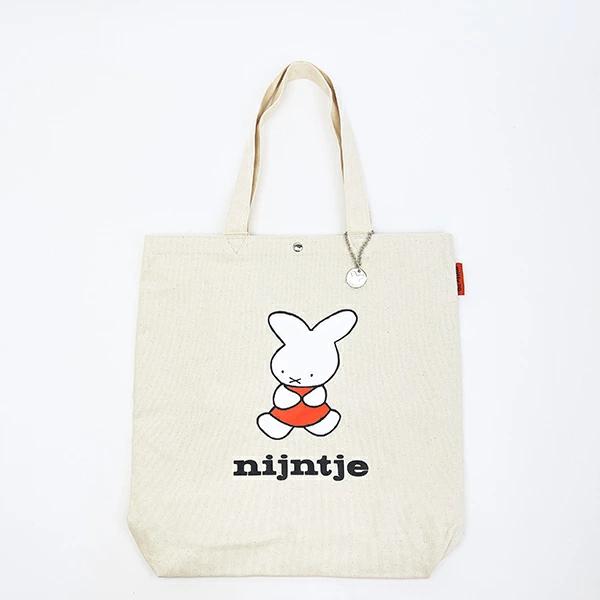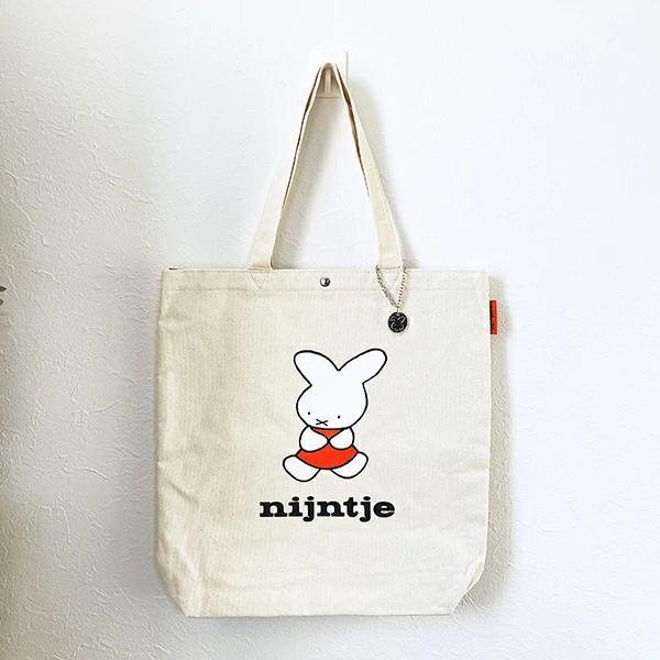 ミッフィー70周年記念の特別なnijntje(ナインチェ)デザインのサイドボタンミニトートバッグです。バッグのサイドにボタンがついており、ボタンをつけたままでも外した状態でもお好みの形に変えて使用できます!マチも広く容量も約4Lと収納力も抜群☆ナインチェのチャームがとってもキュート♪丈夫な帆布素材がナチュラルな風合いで季節やご年齢問わず気軽にお使いいただけます☆彡
