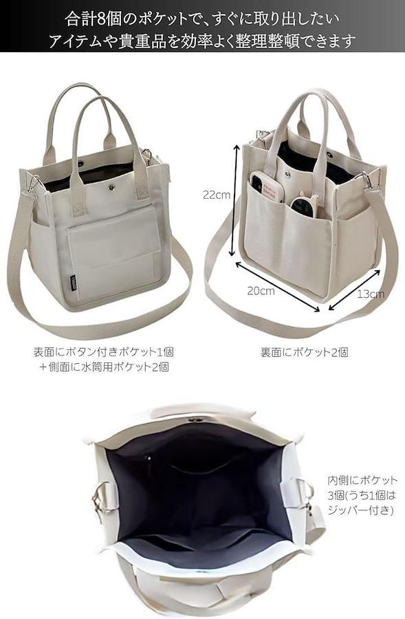「合計8個のポケットで整理整頓が簡単。」このトートバッグには合計8個のポケットがあり、すぐに取り出したいアイテムや貴重品を効率よく整理できます。