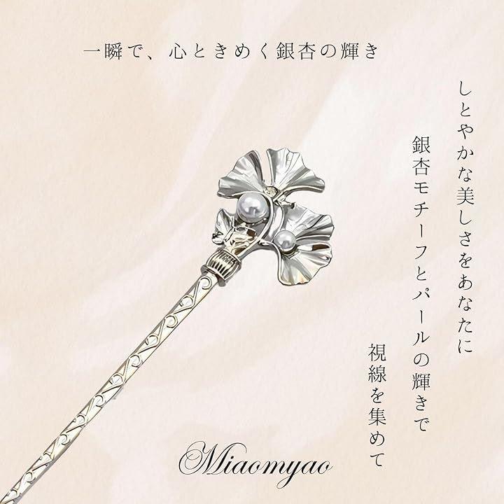 「商品特徴:洗練された煌めき、こだわりのディテール」優雅な銀杏の葉をモチーフにした、美しい一本挿しかんざしです。