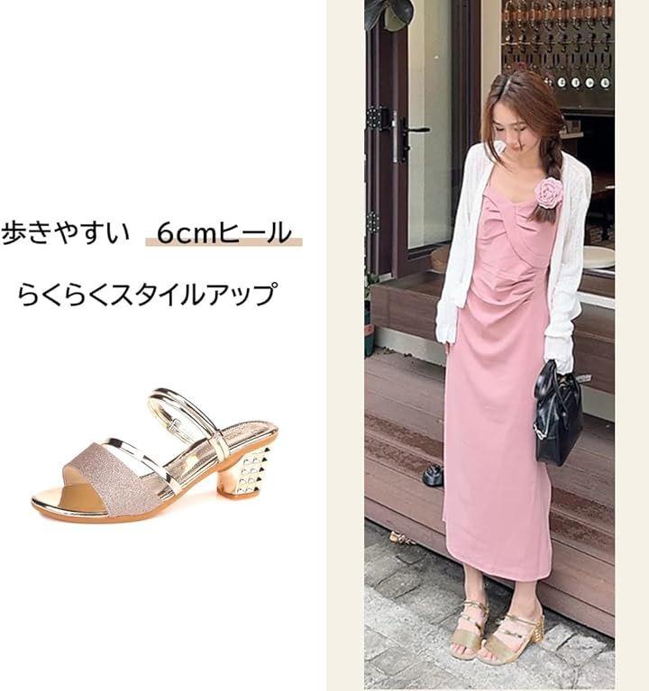 「キラキラと輝くヒールが特徴のストラップサンダル」メタリックなデザインで普段のおしゃれに新しいイメージをプラスします。