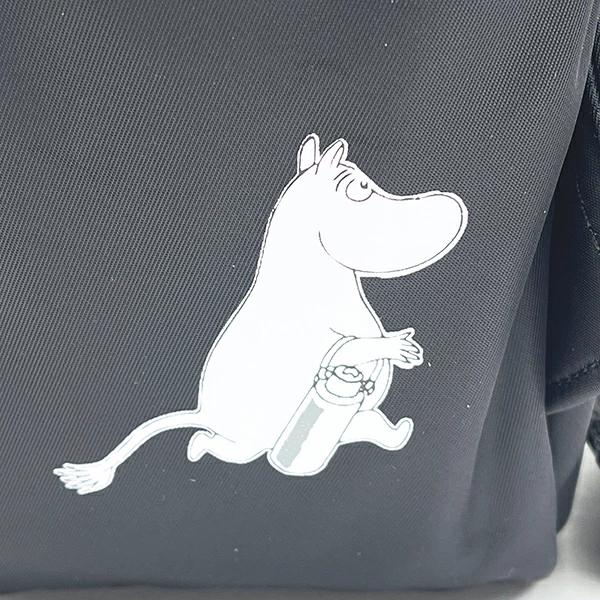 見た目はシンプルで大人っぽいブラックカラーのスクエアリュックです。たっぷり入る約8Lの容量で、サイドポケットやパスケース付きの機能性も◎両サイドにプリントされたムーミンが、おでかけを楽しくしてくれますよ♪