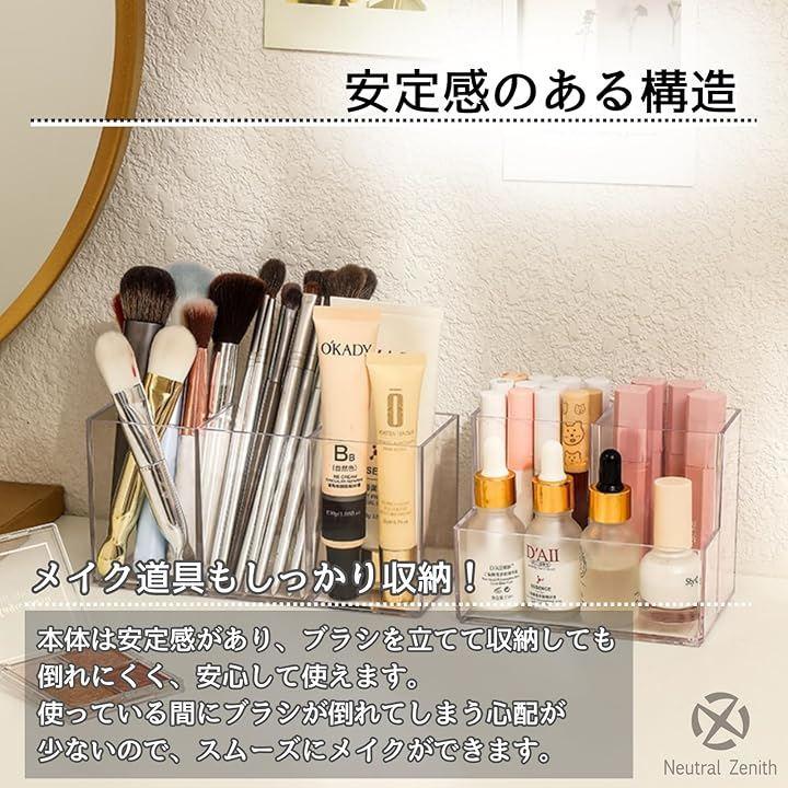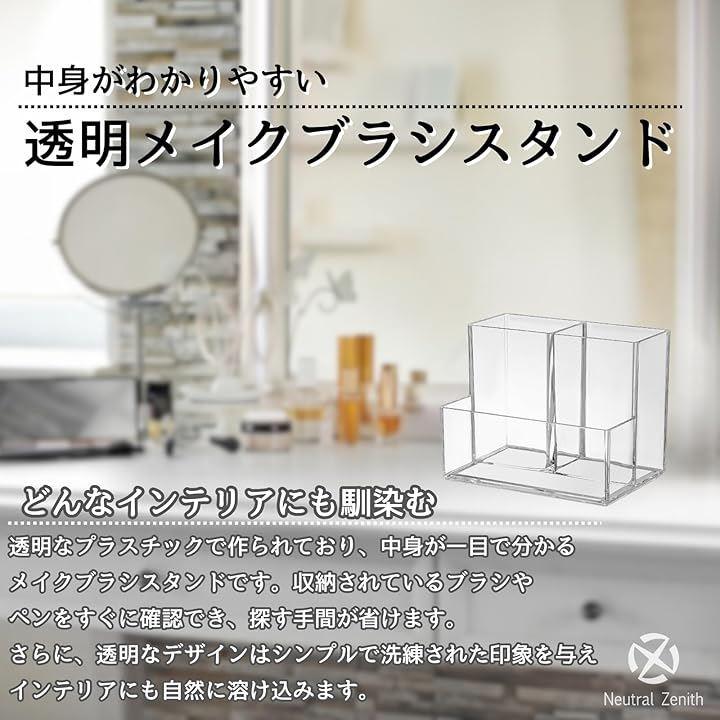 「透明メイクブラシスタンド」透明なプラスチックで作られており、中身が一目で分かるメイクブラシスタンドです。