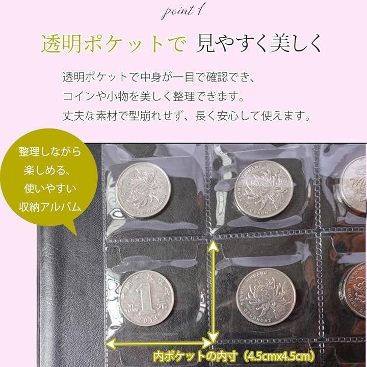 「コレクションに最適なサイズ設計」:各ポケットは4.5cmx4.5cm(内寸)で、一般的な記念硬貨やスーベニアメダル、記念コインに対応するメダルホルダーです。