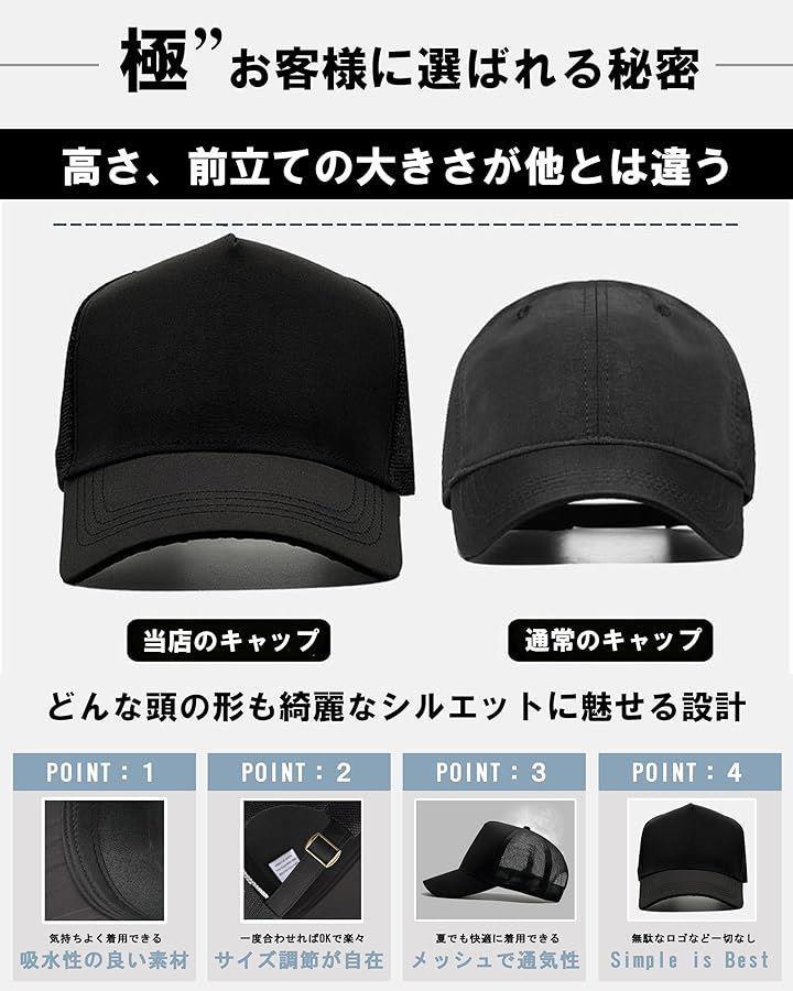 頭回りが大きいビッグサイズの方でも快適に使える人気のキャップ帽です。