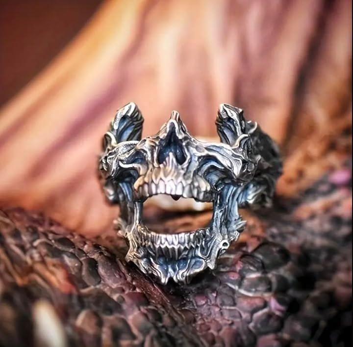 このリングは、髑髏の中でも特に「下あご」部分だけを切り出した、鋭く個性的なデザインが光るステンレス製リングです。