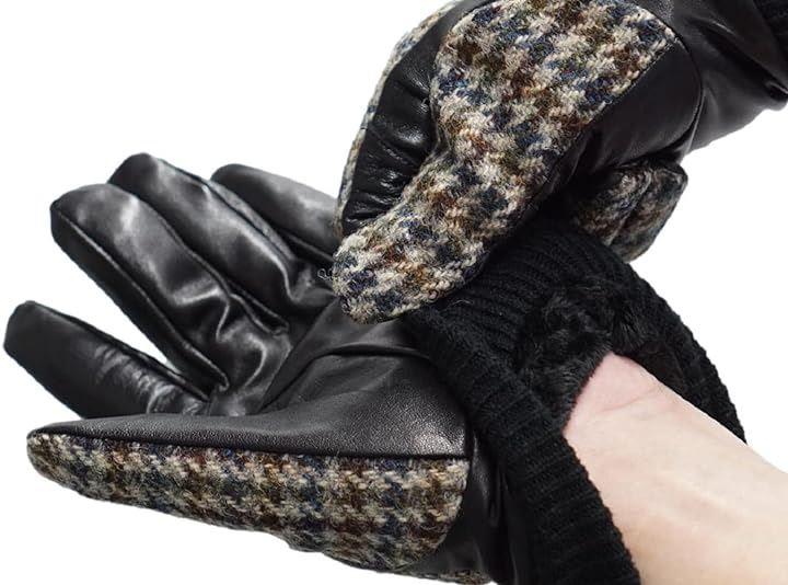 甲部分に有名なイギリスのハリス社のツイード生地を用いた手袋になります。