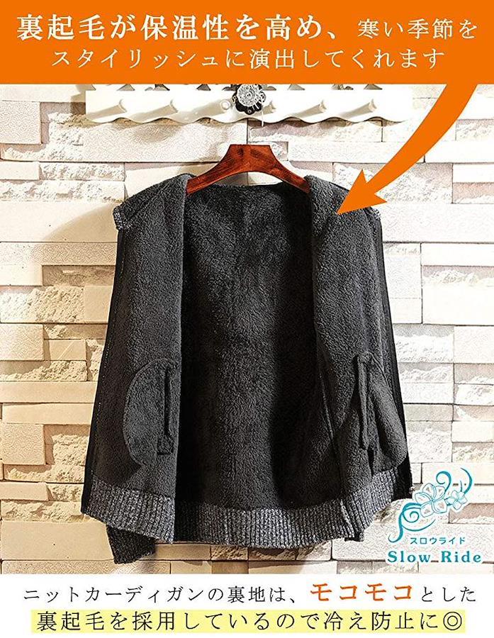 ・ニットカーディガンの裏地は、モコモコとした裏起毛を採用*この裏起毛が保温性を高め、寒い季節をスタイリッシュに演出して くれます。