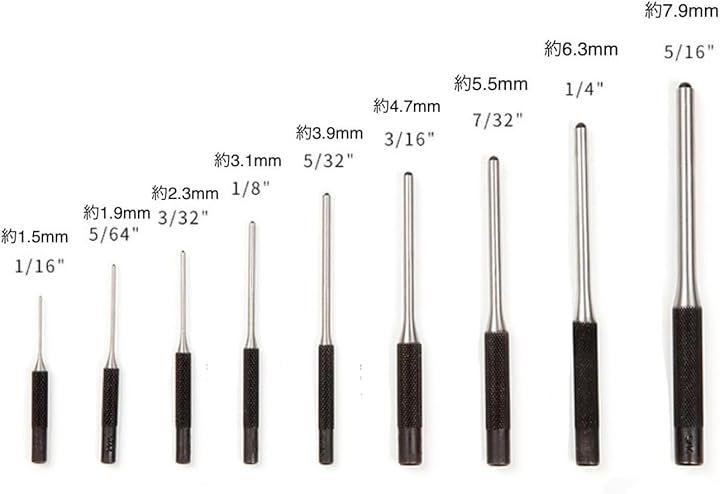 ピンポンチについて:サイズはインチ表記ですが、約1.5/1.9/2.3/3.1/3.9/4.7/5.5/6.3/7.9mm合計9種類ポンチセットです。