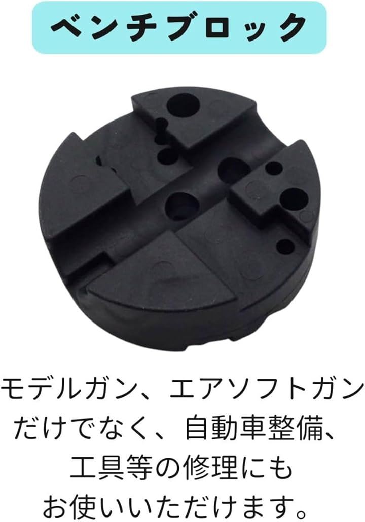 ベンチブロックは、モデルガンだけでなく、自動車部品、工具やホビーパーツなどの分解や取り外し用の便利なグッズです。