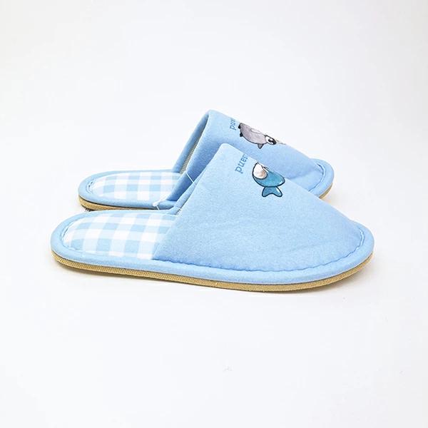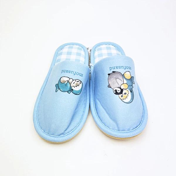 モフサンド、サメにゃんのスリッパです♪可愛いサメにゃんとブルーチェック柄がキュート♪ふわふわ素材で履きやすいですよ☆彡【サイズ:約22~24cm対応】