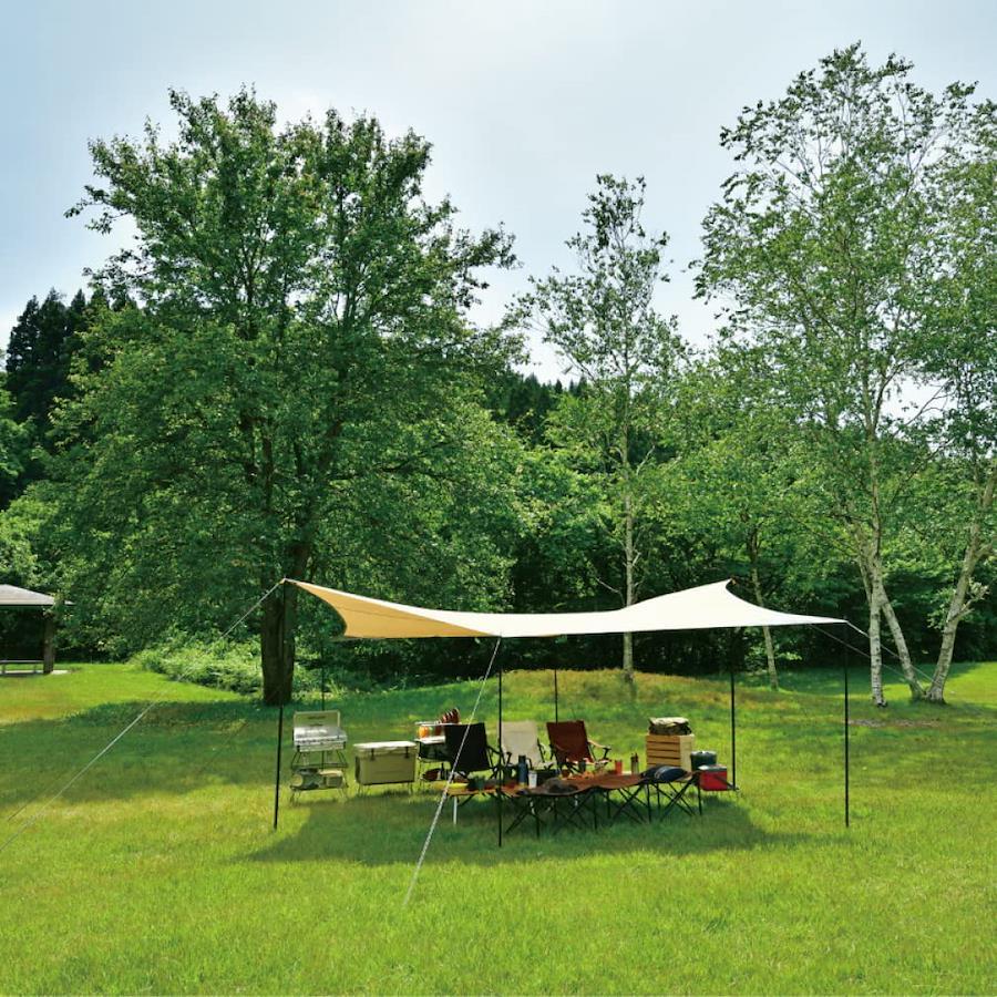 REVOタープ用推奨ポール。接続部分はクリックボタン式で高さ調節も可能。