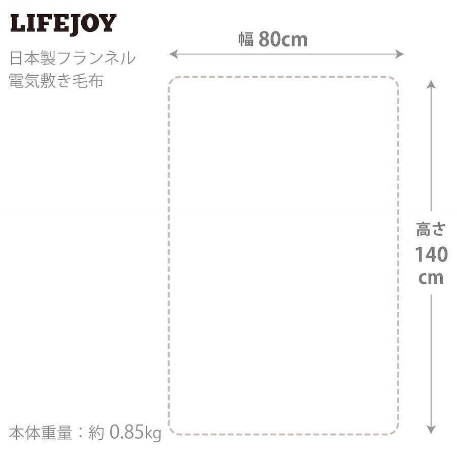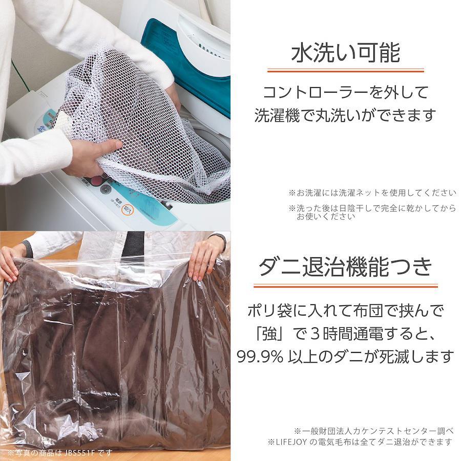 3営業日以内に発送≪新品未開封品≫:【ふわふわなさわり心地】なめらかな肌触りが特徴のフランネル毛布です。 この毛布は、敷布団やマットレスに敷いてお使いいただけます。 フランネルはふんわりと柔らかい素材なので、電気を入れなくても触っているだけでぬくもりを感じます。【ダニ退治ができて、洗える】屋内じん性ダニ類に対応したダニ退治機能がついています。 電気毛布をポリ袋に入れて、布団に挟み、3時間「強」で運転するだけです。 これだけで99.9%のダニを退治できます。 しかもコントローラーを取り外せば、洗濯機で丸洗いできるので、いつでも清潔にお使いいただけます。【使い方が簡単でお得!】コントローラーのスライドで温度調節が感覚的にできます。 『弱・中・強』の三段階だけでなく、弱から中の間、中から強の間と細かい温度設定も可能です。 また電気代がかからないのも特徴です。「強」で運転しても、電気代は1時間あたり0.97円です。 8時間運転しても10円にも満たないので経済的な電気毛布です。【高い安全性】LIFEJOYの電気毛布は全てSマークを取得しています。 Sマークは、電気製品の安全のための第三者認証制度です。 第三者認証機関によって