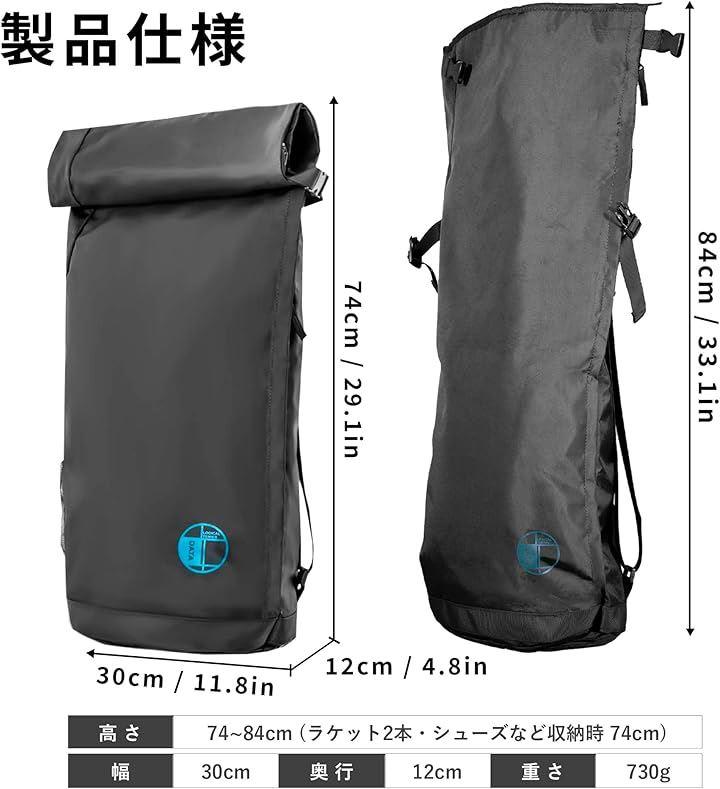 「仕 様」 幅:30cm 奥行:12cm 高さ:84cm(折ってバックルで留めると74cm) 重量:730g ポケットサイズ:39x35、30x35cm