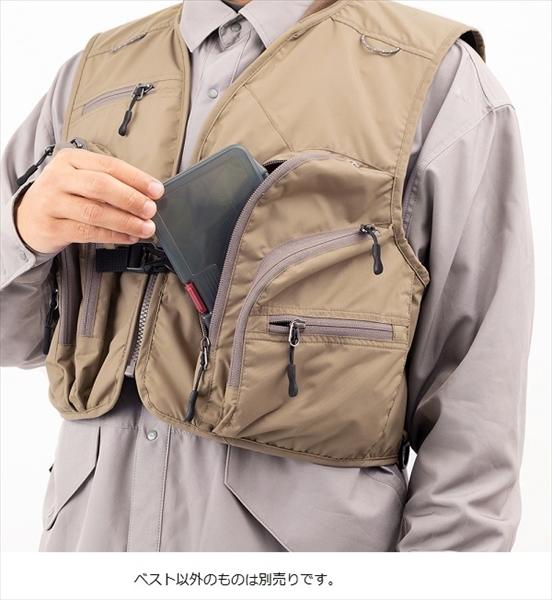 夏も快適ハーフメッシュベスト!過酷な山岳渓流にも対応可能なハーフメッシュベスト。釜や淵などをへつる際に最適なフロントフラット設計。フロントポケットの外面マチが無いフラットバーチカルポケット。明邦化学VS-906(マルチL)収納可能。背面ポケットは収納+ベンチレーション機能を追加。ピンオンリール等の紛失を防ぐ、内ポケットからのスルーホール仕様。 サイズM:着丈45cm 肩巾42cm 身巾55cm 対応身長165~170cm サイズL:着丈47cm 肩巾44cm 身巾58cm 対応身長170~175cm サイズLL:着丈49cm 肩巾46cm 身巾62cm 対応身長175~180cm 素材:ナイロン100% カラー:グレー ※実物と色が違って見える場合があります。あらかじめご了承下さい。