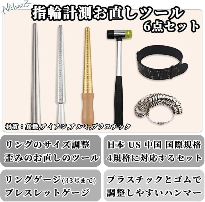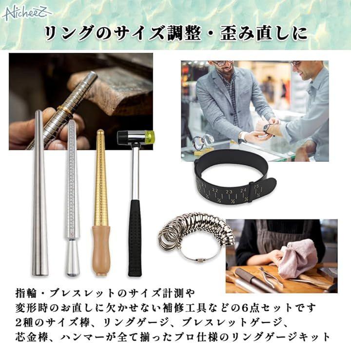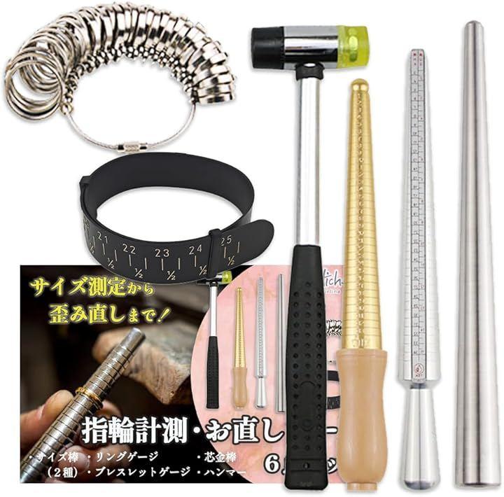 「リングのサイズ調整・歪み直しに」指輪・ブレスレットのサイズ計測や、変形時のお直しに欠かせない補修工具などの6点セットです。