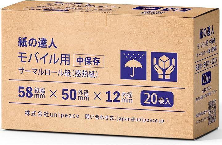 この商品は、用紙サイズ58mm x 50mm x 12mm、紙の厚さ62ミクロンで、約3~5年間の保存期間があり、常温で保管することで最適な状態を保ちます。
