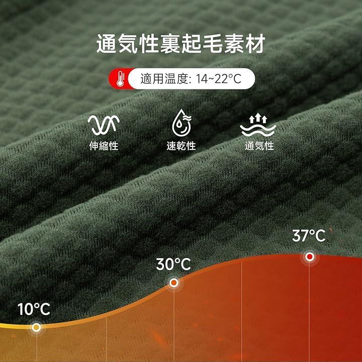 「通気性裏起毛素材」外部は防風生地、裏地は暖かい裏起毛素材で、肌触りが柔らかく保温性に優れると同時に,適度な通気性を確保して蒸れを防ぎます。