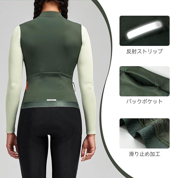 前傾姿勢や腕を前に伸ばす自転車を考慮し、背中を長くなって、肩周りをストレッチに作られています。