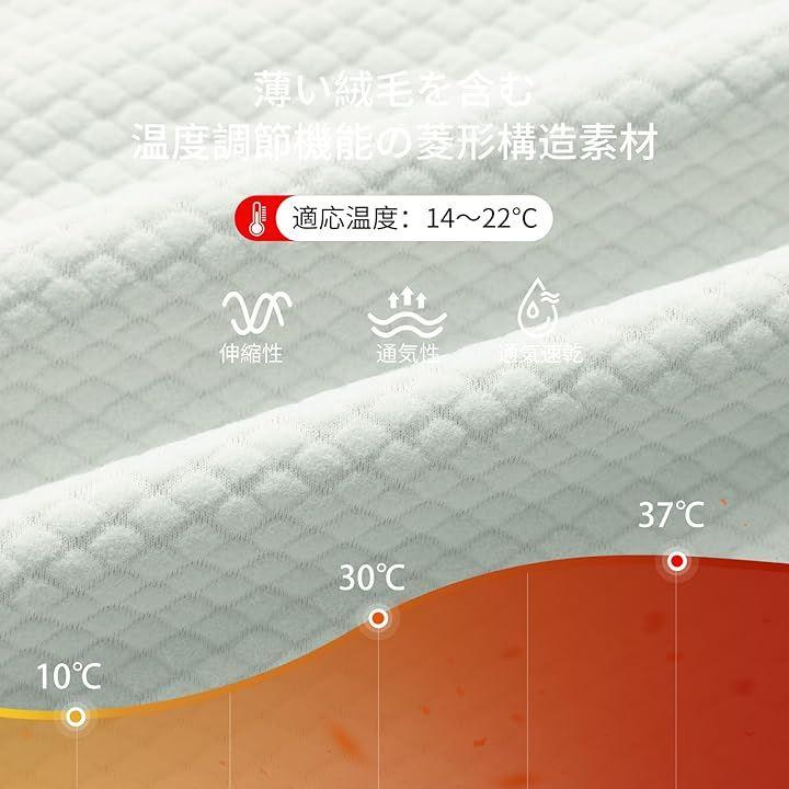 「裏起毛素材」全新薄い絨毛を含む温度調節機能の菱形構造素材(着用適温:14~22℃)、伸縮性と通気性に優れ、湿気除去と急速乾燥性能を備えた質地です。