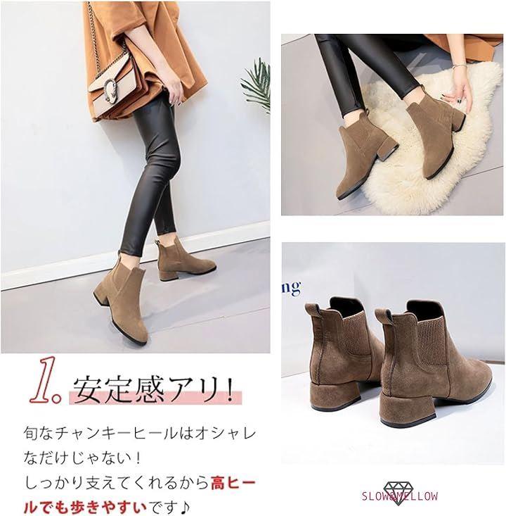 ・サイドのゴムがしっかりと伸びるのですぽっと履きやすく足首にしっかりとフィット。ソールは高さ3.5cmのチャンキーヒール仕様で歩きやすい。