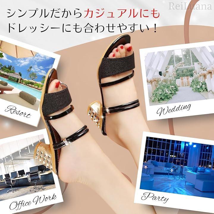 きらめくヒールが目を引くので、シンプルなコーデのアクセントにぴったり。