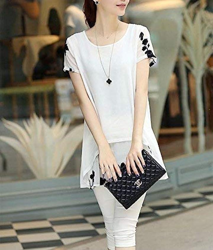 *半袖プルオーバーの裾からチラ見せフェイクレイヤードのフラワー柄がとっても大人可愛い*