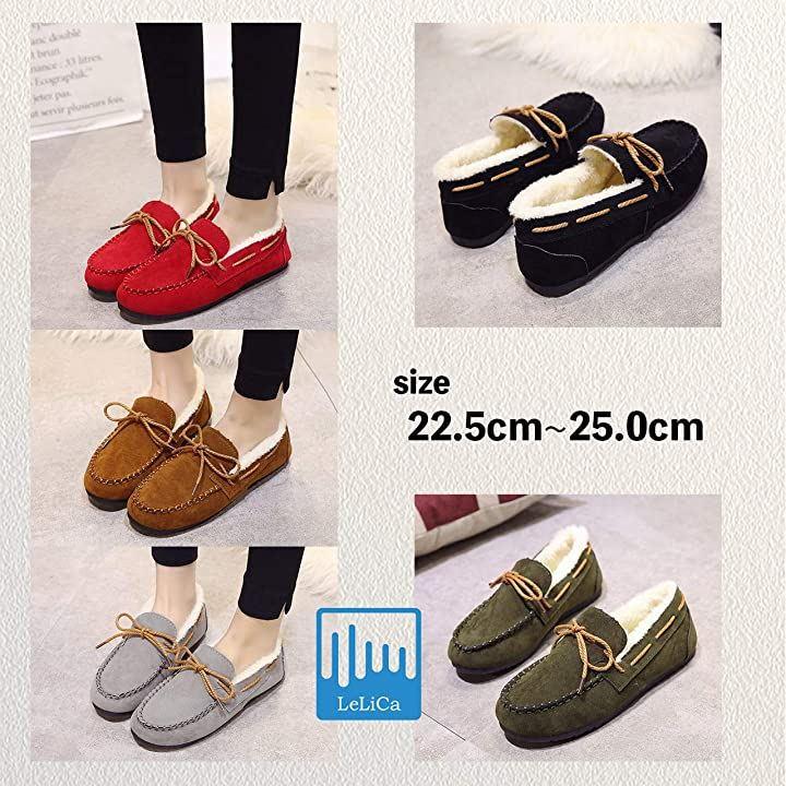 フラットヒールで歩きやすく、ムートン調のボアに包まれて、足元暖か。素足でもタイツでも履きやすく、寒い時期にピッタリのモカシンシューズです。