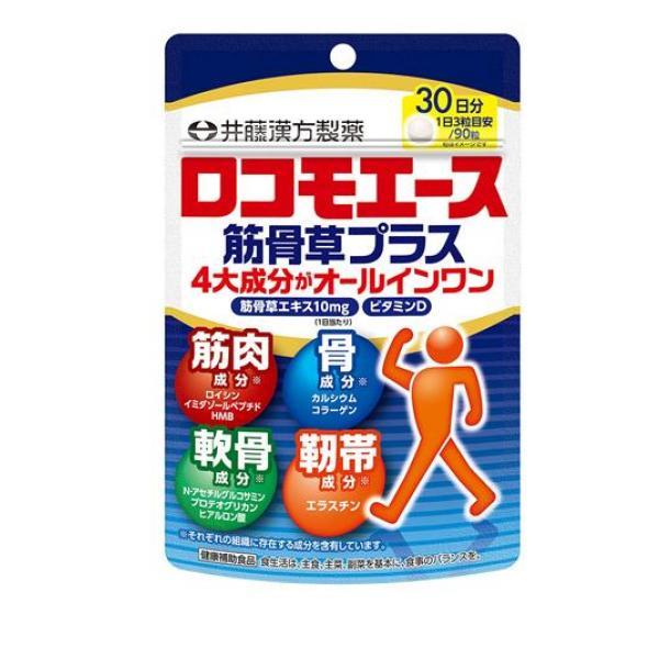 製品の特徴●井藤漢方製薬 ロコモエース筋骨草プラス●筋骨草配合エキスサプリメント●筋骨草+4大成分+ビタミンD配合!●本品は古くから活用されてきた植物である筋骨草を主成分としています。さらに、アクティブな毎日をサポートするために欠かせない重要な4つの成分を贅沢に配合しました。(1)筋肉成分*(ロイシン、イミダゾールペプチド、HMB)(2)骨成分*(カルシウム、コラーゲン)(3)軟骨成分*(N-アセチルグルコサミン、プロテオグリカン、ヒアルロン酸)(4)靭帯成分*(エラスチン)[*それぞれの組織に存在する成分を含有しています。]●健康補助食品●名称:筋骨草エキス・ビタミンD含有食品●内容量:22.5g(250mg×90粒)●形状:タブレット