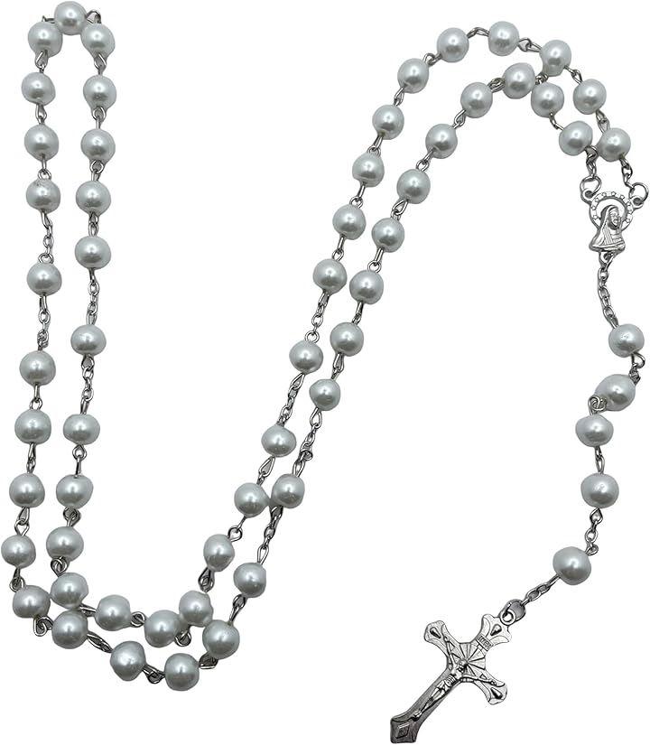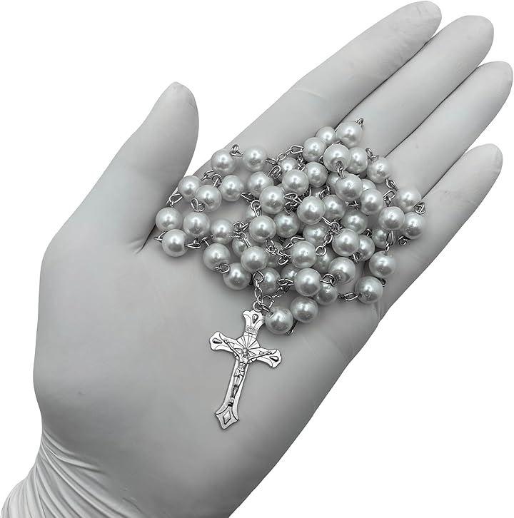樹脂製のホワイトパールを使った美しいロザリオです。