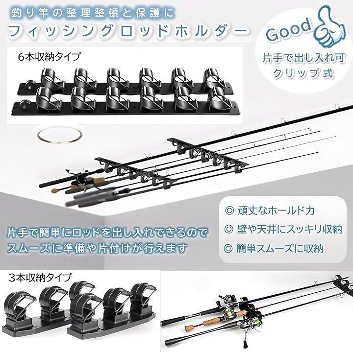 設置場所の自由度が高い:最大3本または6本の釣り竿を収納でき、壁や天井だけでなく、ガレージ、ボート、トラックデッキ、トラックの荷台など、釣りスタイルに合わせて自由に設置でき、様々な場所に設置可能です。