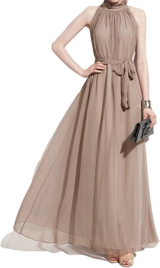 v「一枚で主役。ホルターネックドレス」 シフォンのホルターネックロングドレスが登場です・ シフォン地のちょうどいい高級感と抜け感が、ホルターネックデザインと絶妙にマッチ。