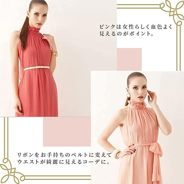 首元のフリルデザインとホルターネックの後ろリボンが首元を華奢に演出してくれますし、アップヘアもより一層華やかに・ ウエストマークのリボンを結べば脚長効果もあり、リボンなしにすればゆったりと。