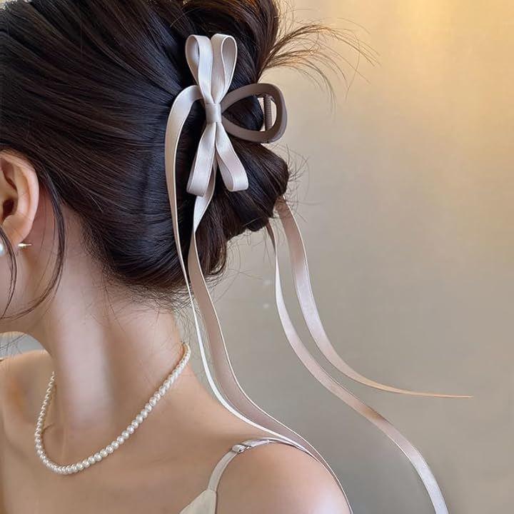・映えるロングリボン 軽やかに揺れる約 30 cm のサテンリボン。