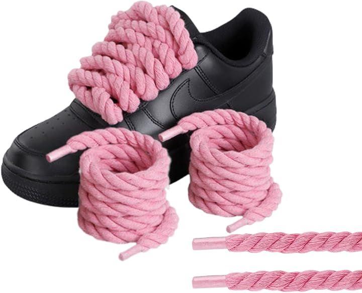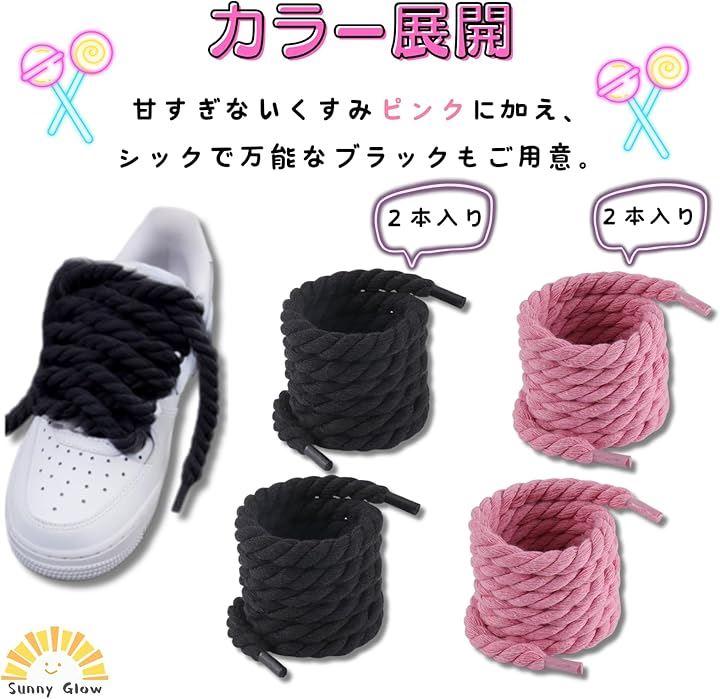 「商品詳細」太さ:約8mm、長さ:約120cm、カラー:ピンク・ブラック、内容数:靴紐(ロープシューレース)2本入り